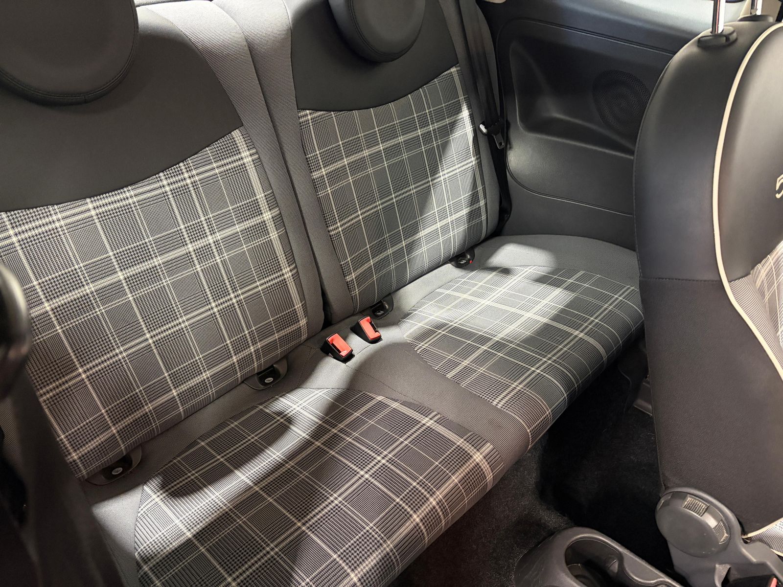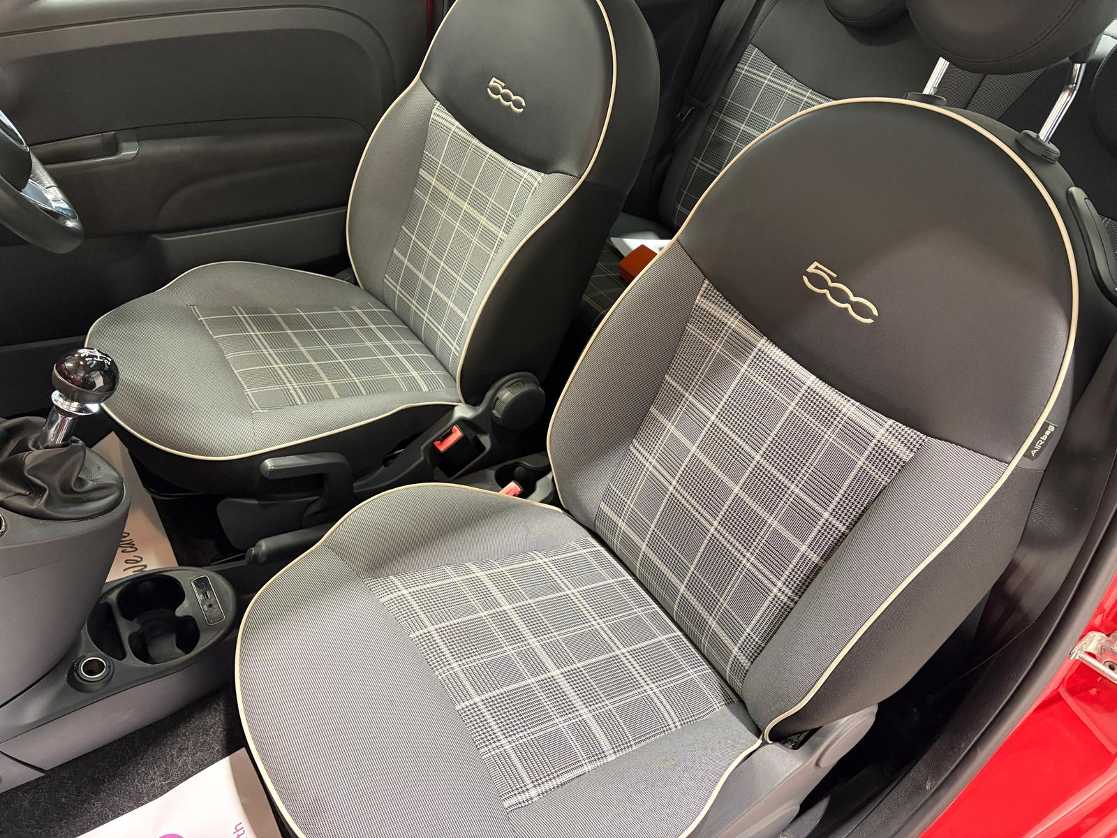 Step inside to discover an inviting and stylish cabin, boasting high-quality Cloth upholstery in Black-Light Grey-Ivory with a sophisticated Black Ambience. The unique Glam Coral accents throughout the interior add a playful touch, enhancing the lively character of the Fiat 500. With its thoughtfully designed layout, this vehicle offers a surprisingly spacious feel despite its compact stature, providing comfortable seating for up to four passengers and ample luggage space.